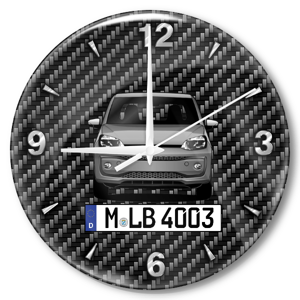 Up (5-Türer) Wanduhr personalisiert mit Auto u. Kennzeichen! M, Carbon Design