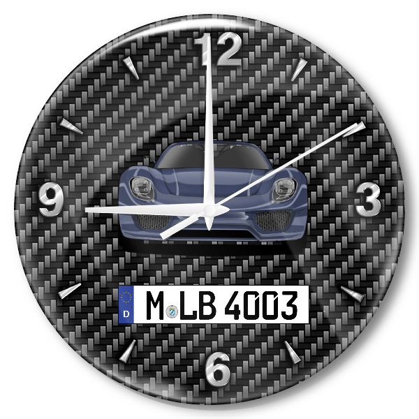 918 Roadster Wanduhr personalisiert mit Auto u. Kennzeichen! M, Carbon Design