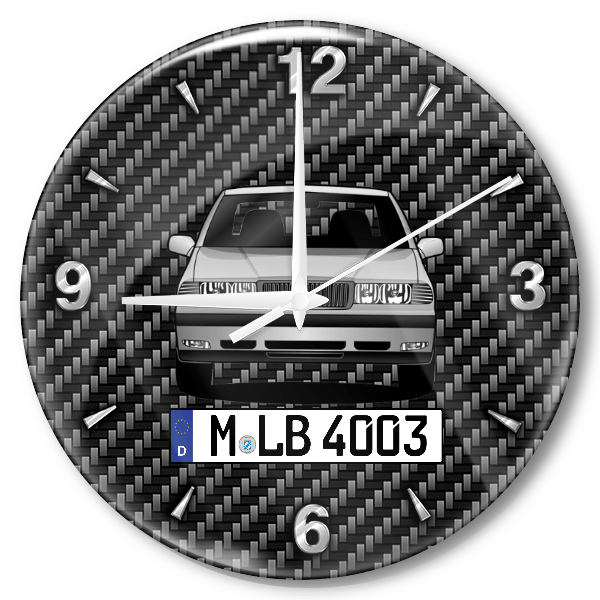 M3 E30 Wanduhr personalisiert mit Auto u. Kennzeichen! M, Carbon Design