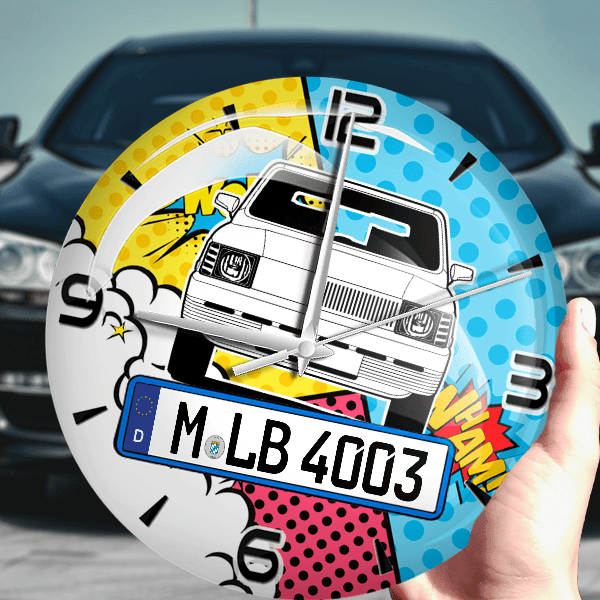 Crafter Wanduhr personalisiert mit Auto u. Kennzeichen! M, Comic Design 1