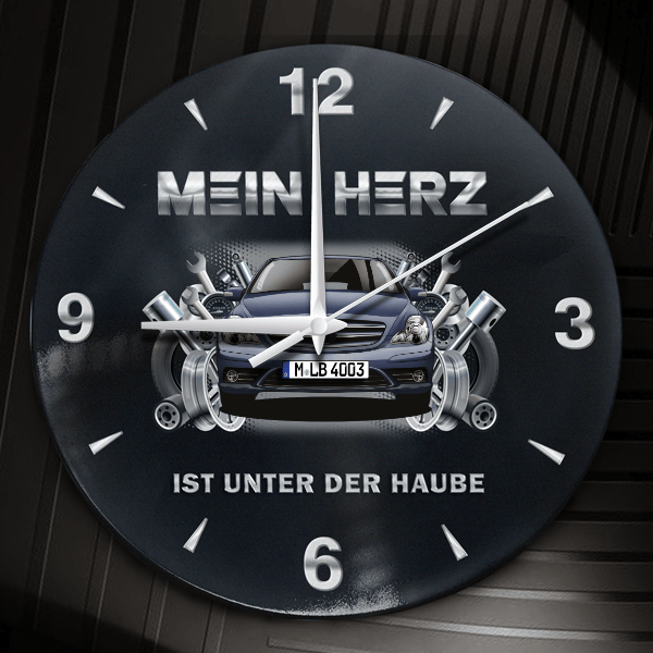 R4 Wanduhr personalisiert mit Auto u. Kennzeichen! M, Tuning Design 2