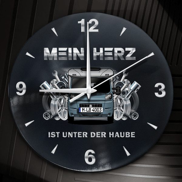 Cruiser Wanduhr personalisiert mit Wohnwagen u. Kennzeichen! M, Tuning Design 2