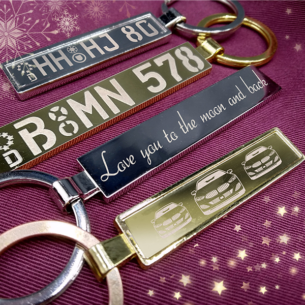 Persönlich gestalteter Schlüsselanhänger mit Gravur mit deinem Automodell u. Kennzeichen im Design Gold untern Weihnachtbaum!