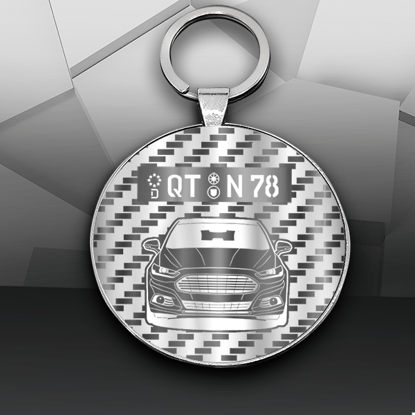 Persönlicher Schlüsselanhänger Rund mit deinem Auto und Kennzeichen mit Gravur Premium-M im Design Carbon Pattern! - auto4style