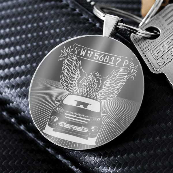 Persönlicher Schlüsselanhänger Rund mit deinem Auto und Kennzeichen mit Gravur Premium-M im Design American Eagle! - auto4style