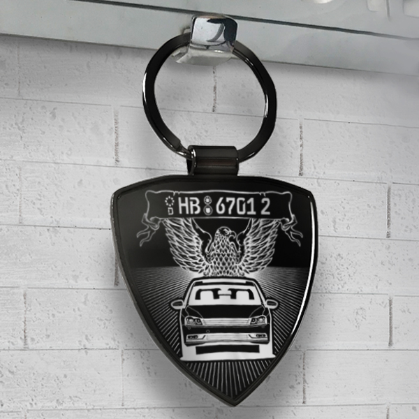 Personalisierter Schlüsselanhänger Schild mit deinem Auto und Kennzeichen mit Gravur Schwarz-XL im Design American Eagle. - auto4style
