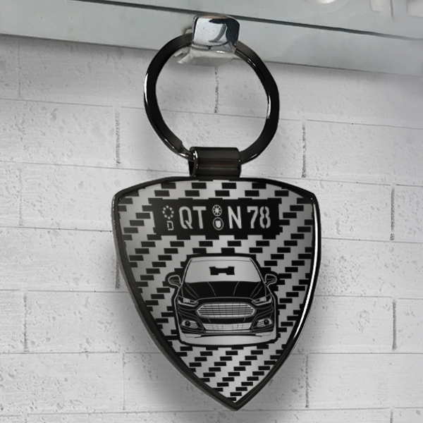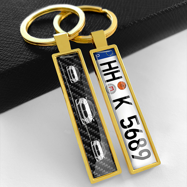 Schlüsselanhänger personalisiert: mit deinem Kennzeichen und Auto! Gold-Variante, Carbon Design. Teste die Vorschau! - auto4style