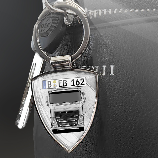 Individueller Schlüsselanhänger-Schild mit deinem LKW u. Kennzeichen in white-leather Design, M, chrom