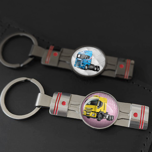 Personalisierter Kolben-Schlüsselanhänger mit deinem LKW u. Kennzeichen in pink snake Design