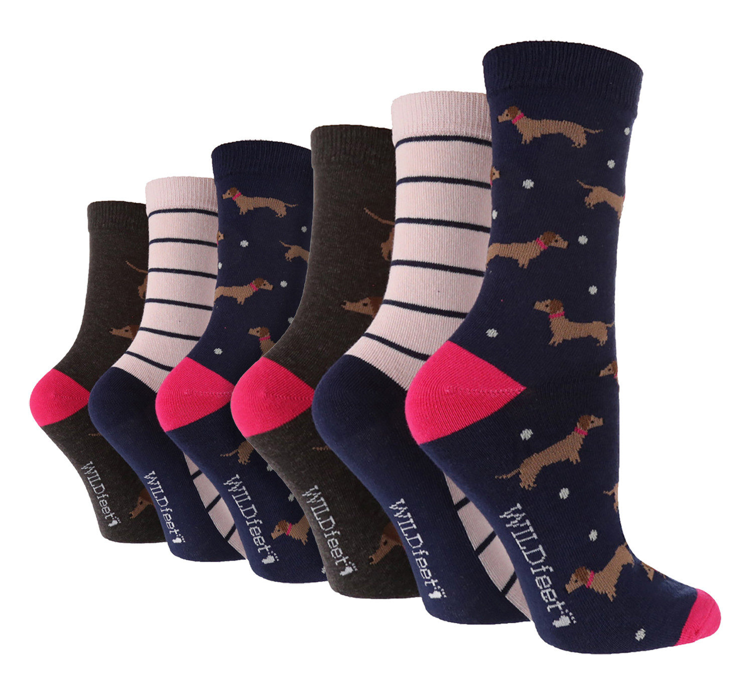 6 Pack Damen Fun Design Socken | Wildfeet | Niedliche Neuheit Tiermuster Socken - Dashchund
