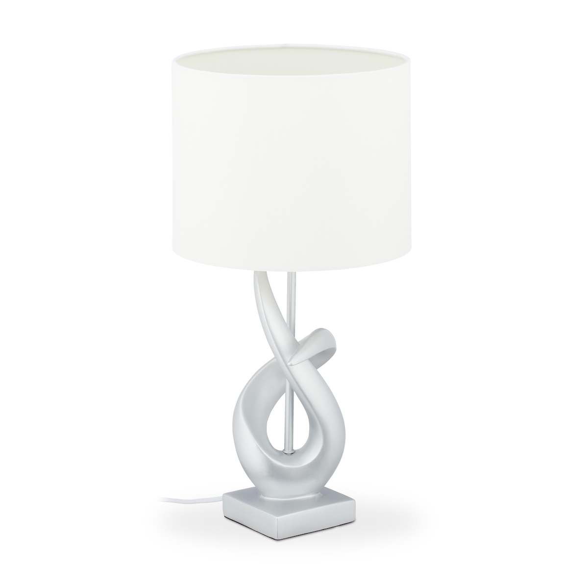 Relaxdays Tischlampe modern, elegantes Design, Tischleuchte Stoffschirm, E27, Designerlampe HxD: 50x25 cm, silber/weiß