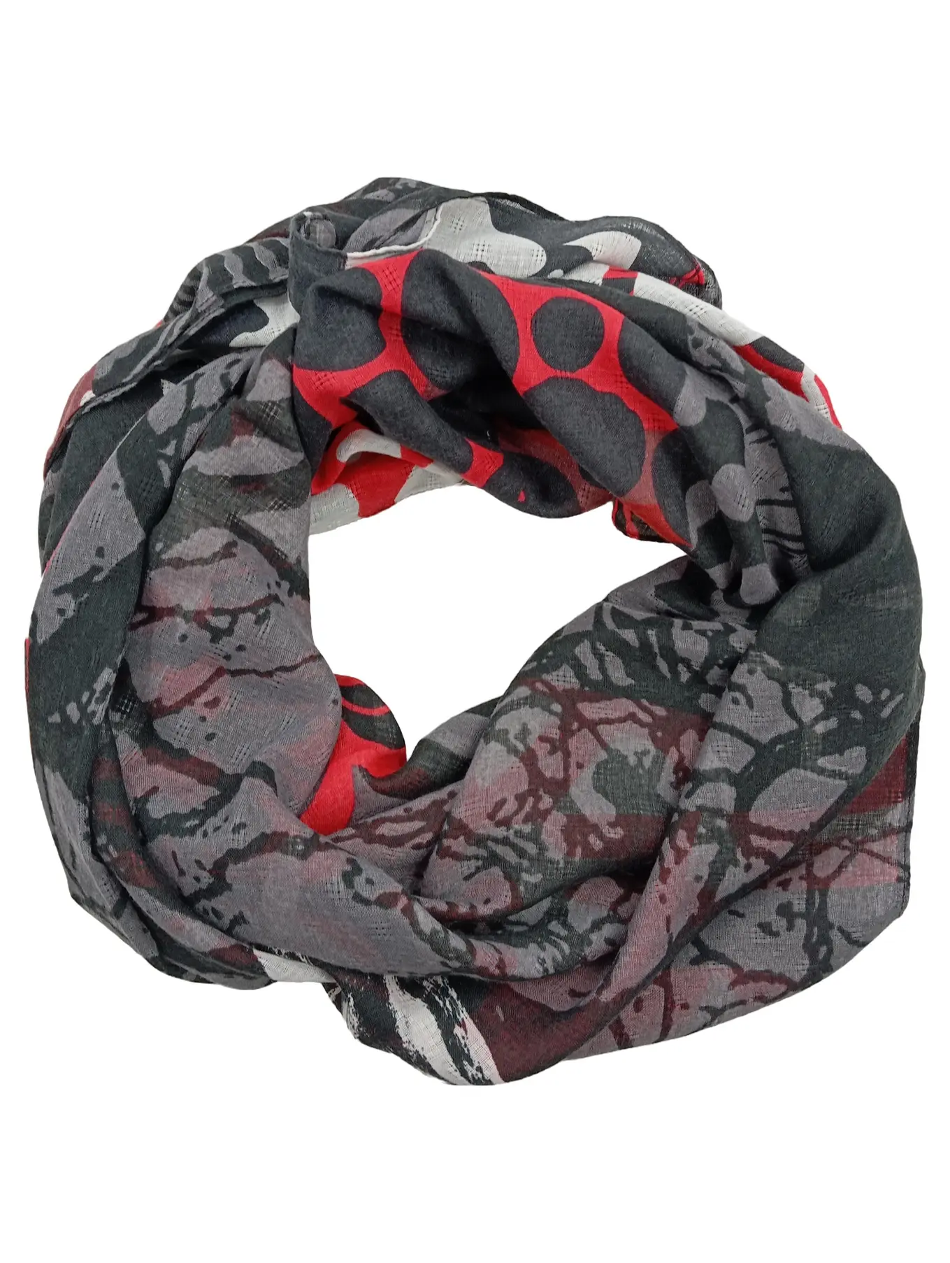 DESIGUAL Damen Schal Tuch Grau Rot Abstrakt Logo Print 189x109 cm