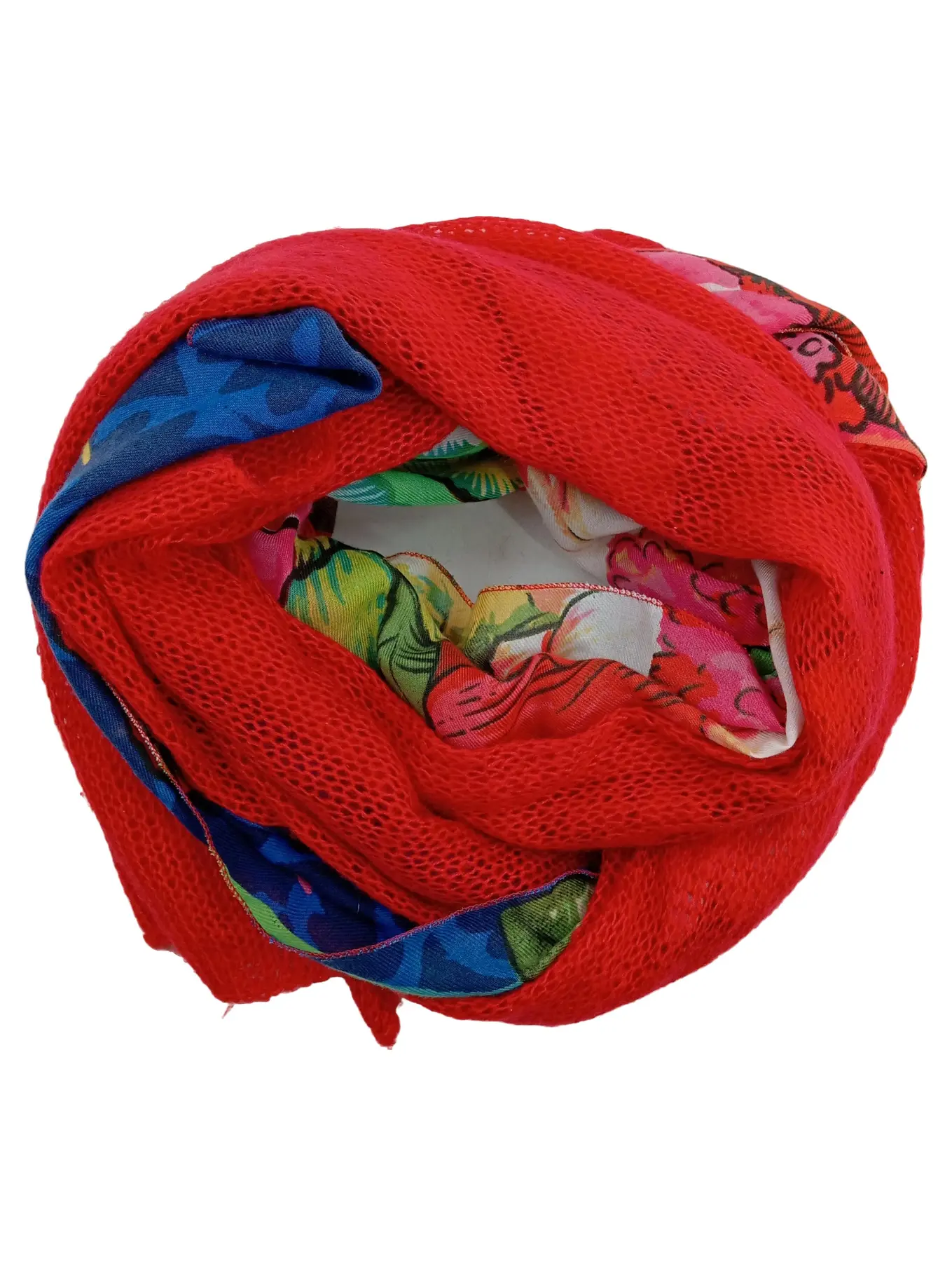 DESIGUAL Damen Schal Blumenmuster Rot Bunt Bohemian 238x99 cm