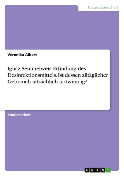 Ignaz Semmelweis Erfindung des Desinfektionsmittels. Ist dessen alltäglicher Gebrauch tatsächlich notwendig?, Taschenbuch von Veronika Albert, GRIN,