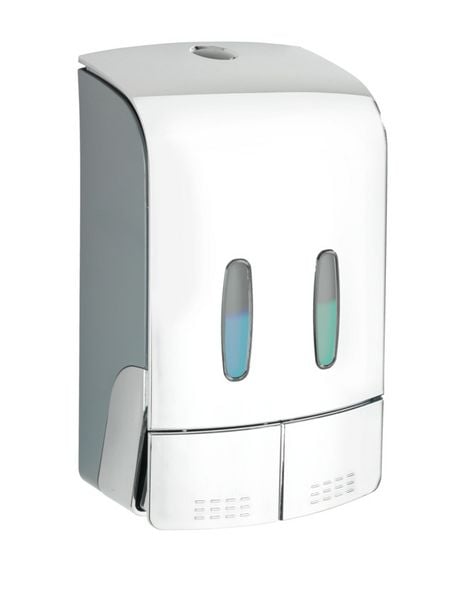 2-Kammer Desinfektionsmittel- und Seifenspender Mod. Tartas Chrom, Füllmenge je Kammer: 480 ml
