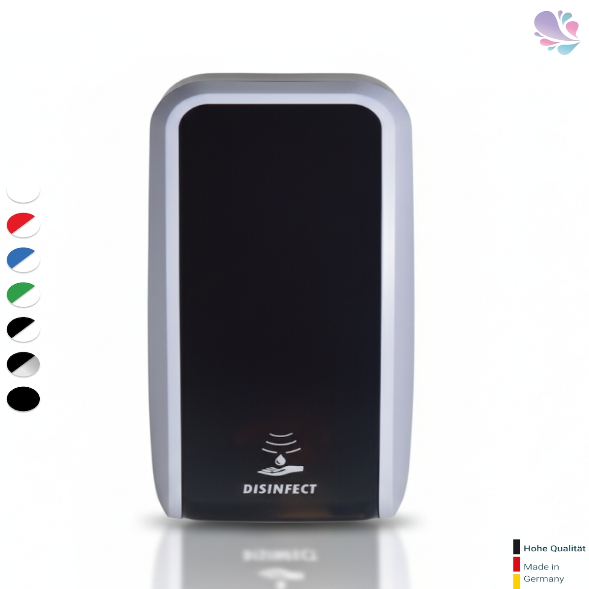 SET: Desinfektionsspender SENSOR, berührungslos Blanc Cosmos versch. Farben+Edelstahlhalterung mit Auffangschale : Farbe - Schwarz / Weiß Farbe: ...