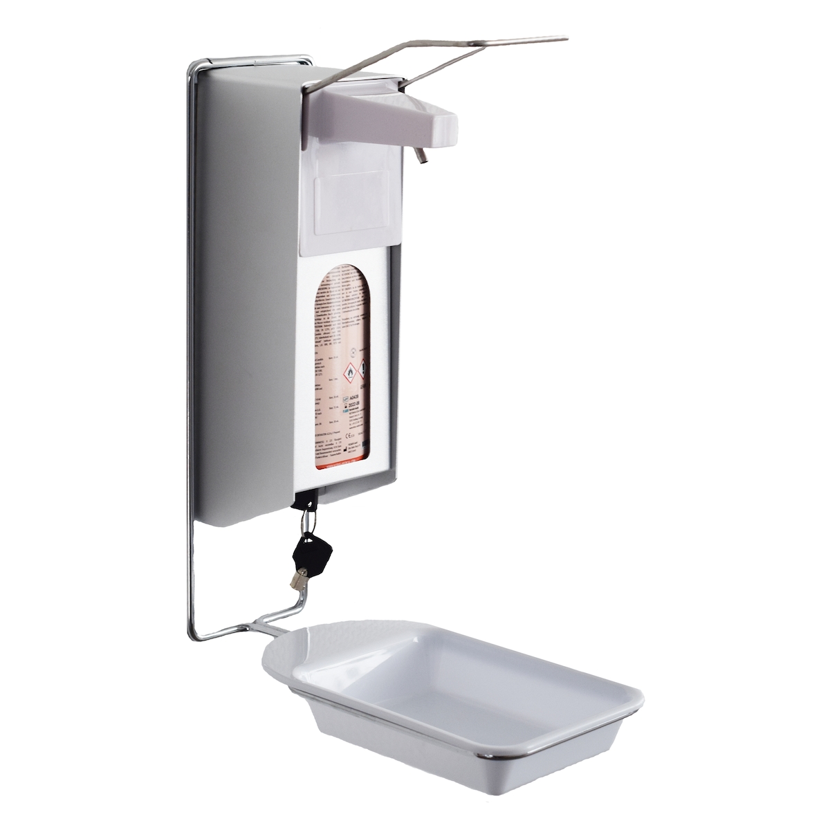 MCD Medical Care Dental GmbH Desinfektionsspender | Alu | Abtropfschale| abschließbar | 1000 ml | langer Hebel