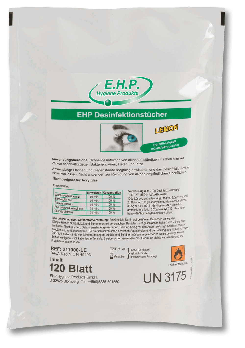 EHP Desinfektionstücher für Oberflächen, Lemon, 120 Tücher