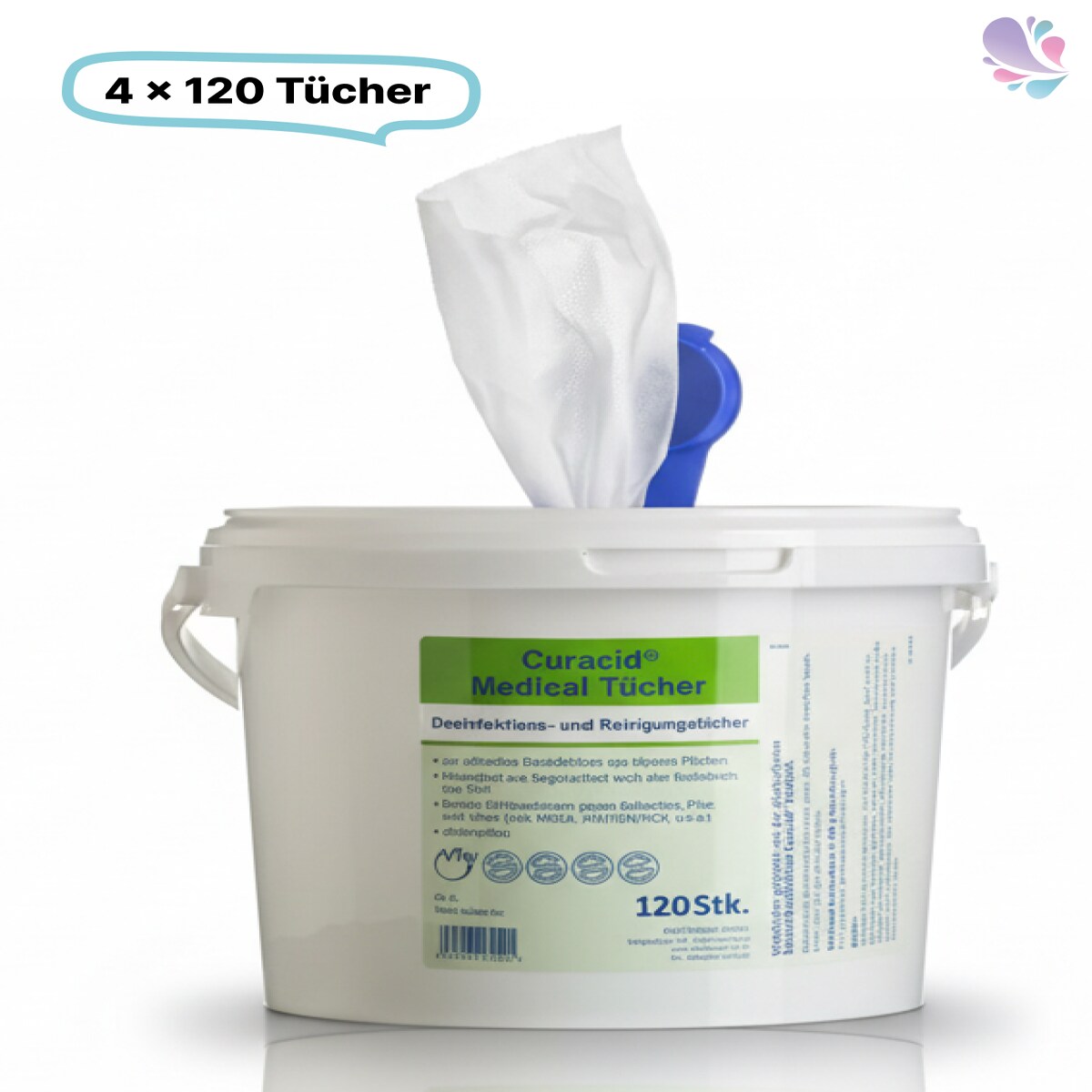 Medical Desinfektionstücher im Spendereimer, 120 Tücher., alkoholfrei, sofort einsatzbereite Tücher, ideal zur schnellen Flächendesinfektion