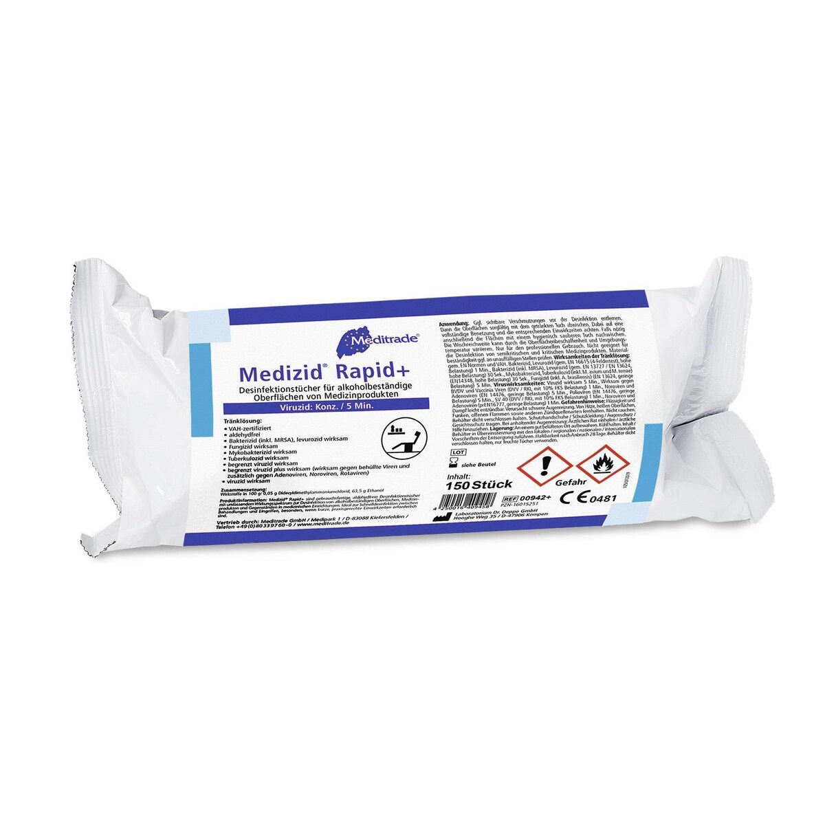 Meditrade Medizid Rapid+ - Desinfektionstücher - aldehydfrei - viruzid - 12 Dosen a 150 Tücher