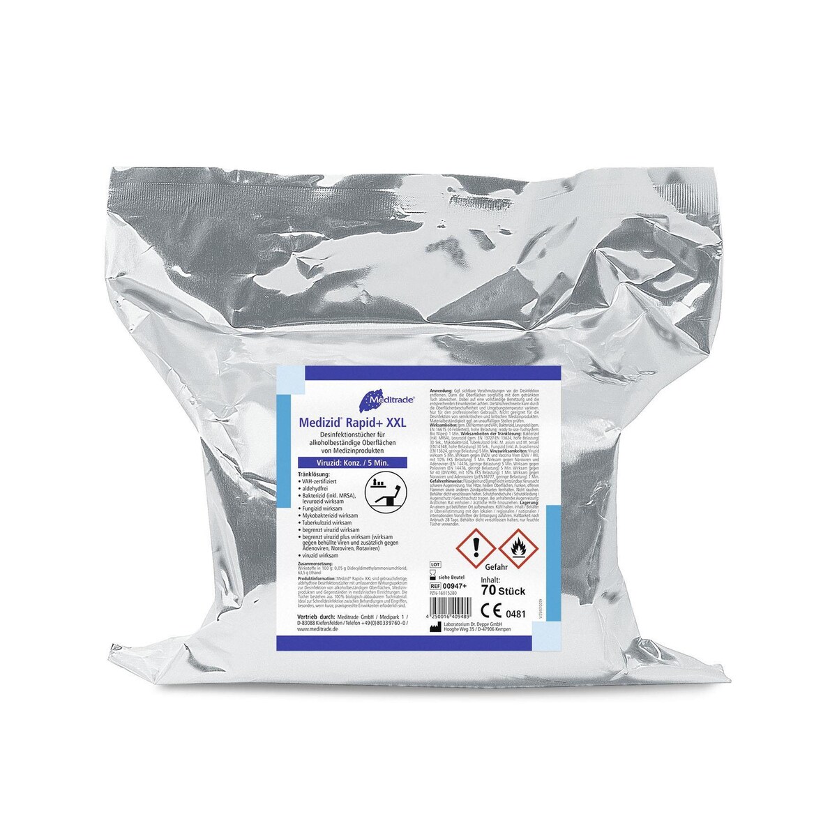 Meditrade Medizid Rapid+ - Desinfektionstücher aldehydfrei 6 Nachfüllpackungen f. Eimer