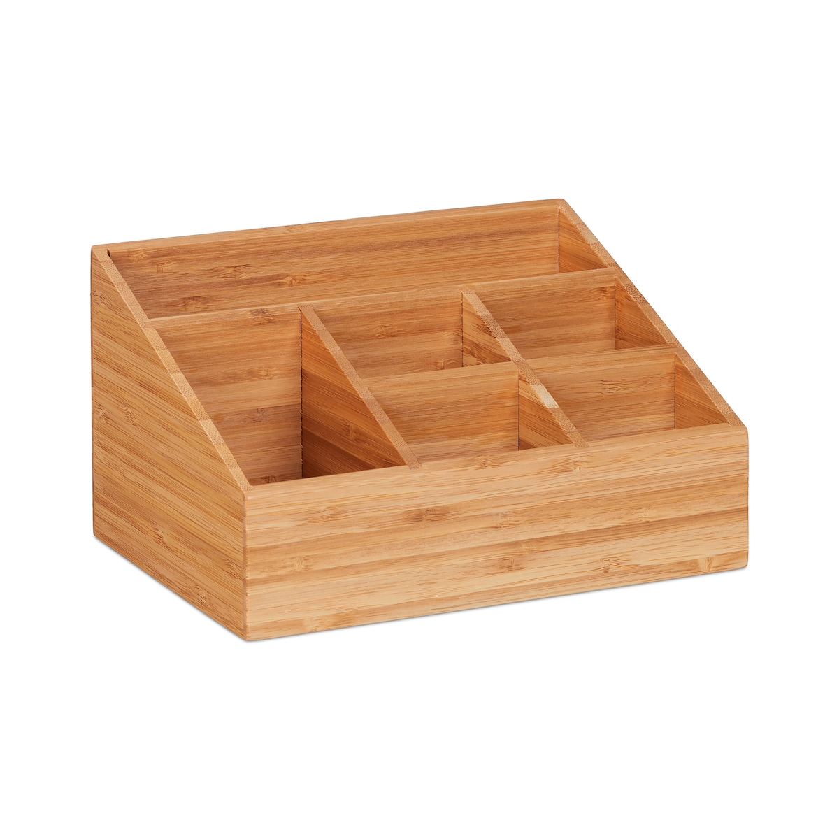 Relaxdays Schreibtisch Organizer, 6 Fächer für Stifte, Notizzettel, Briefe, Büroklammern, Desk Organizer Bambus, natur