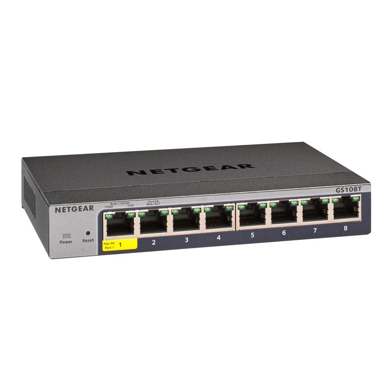 NETGEAR 8-Port Gigabit Ethernet Smart Switch (GS108T): Managed, mit 1 PD-Port, optionales Insight Cloud , Desktop oder Wandmontage geräuscharmer