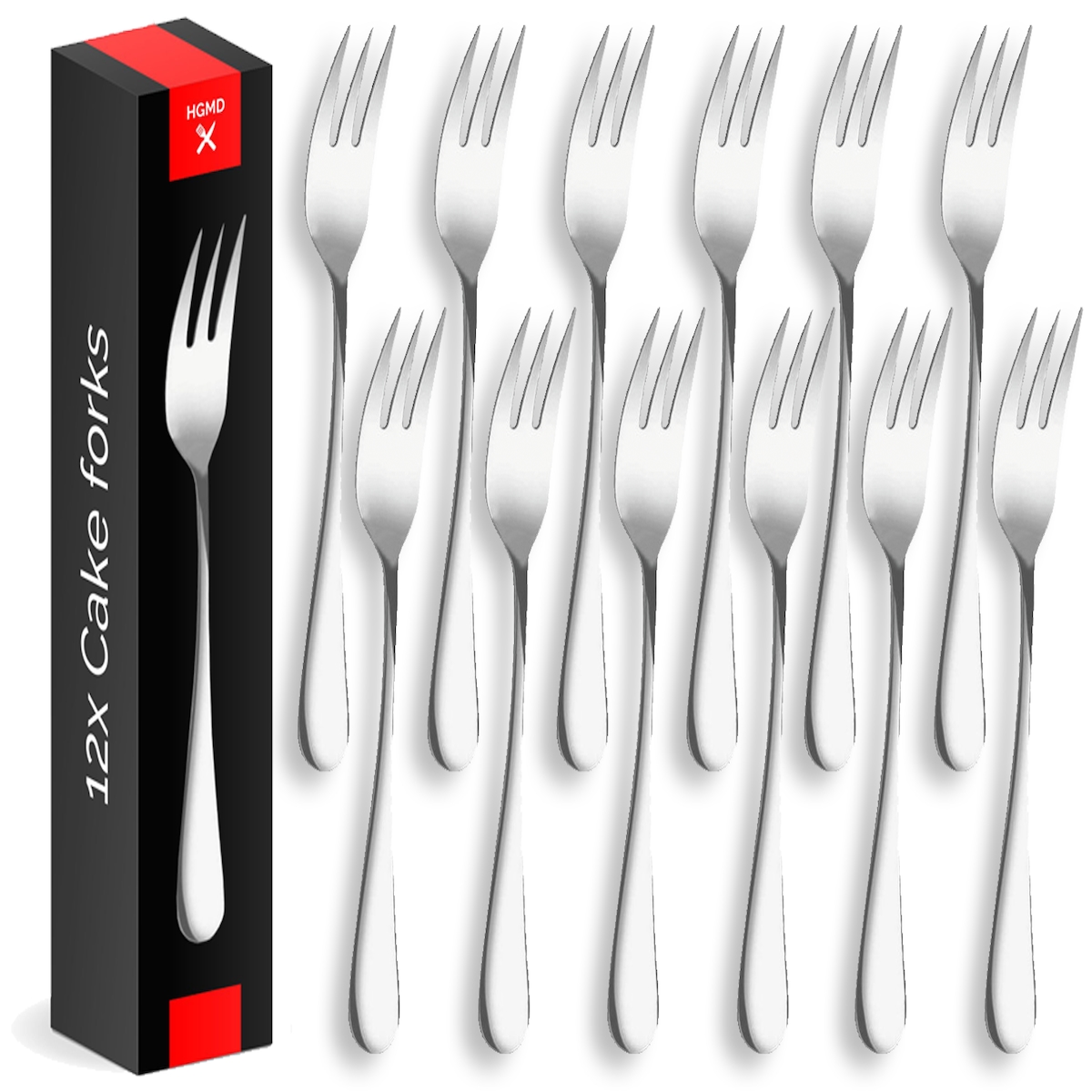 HGMD Kuchengabeln - 12 Stück - 14cm - Dessertgabeln - Kuchengabeln - Cocktailgabeln - Kleine Gabeln - Rostfreier Stahl
