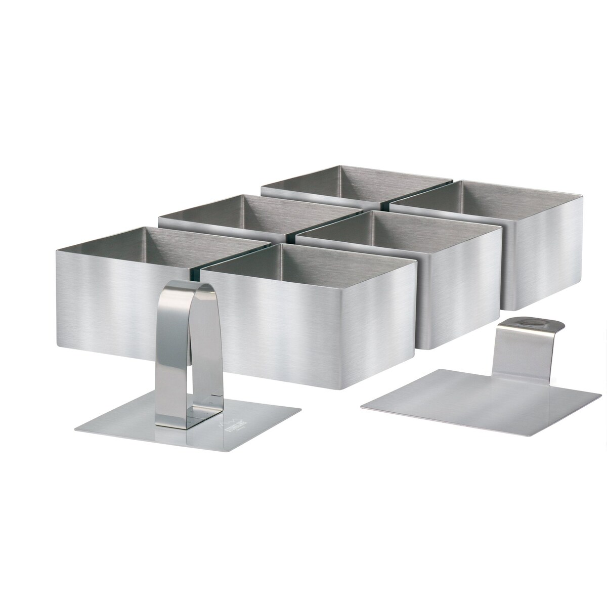 STONELINE Dessertringe und Speiseringe, 8-teilig, Edelstahl, 6 Ringe, 1 Heber, 1 Stempel, eckig