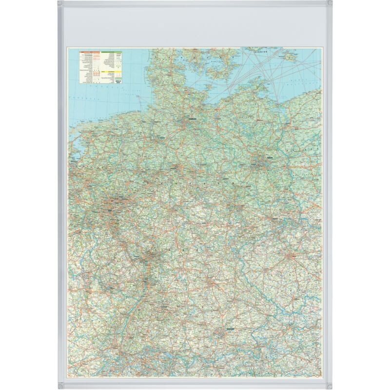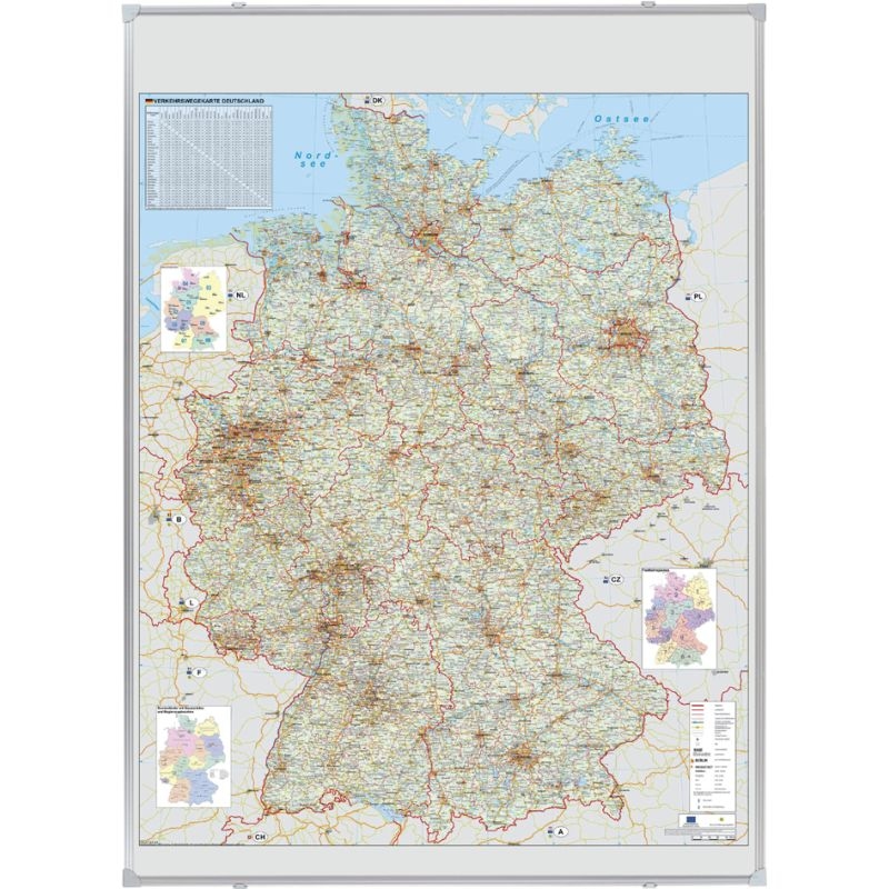 Magnetisches Whiteboard Straßenkarte Deutschland | HxBxT 120x90cm | inkl. Befestigungsmaterial & Stiftablage | Sublimationsstahl