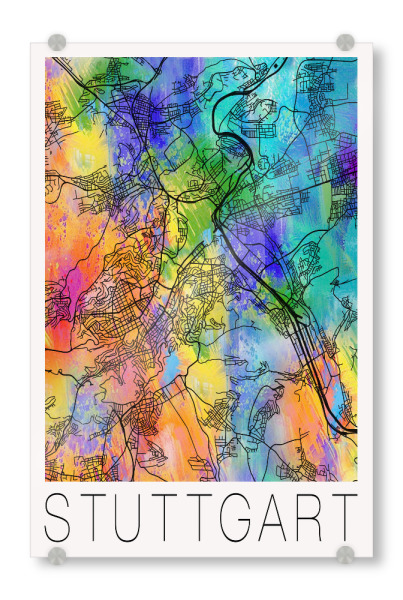 Acrylglasbild "Retro Map of Stuttgart Germany" artboxONE - Städte,Reise,Städte / Stuttgart - Retro,Karte,Stuttgart,Deutschland,Aquarell,Straßenkarte