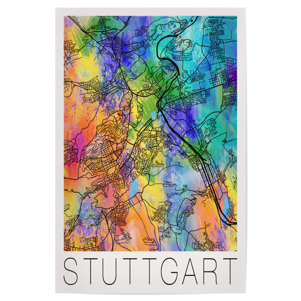 Poster "Retro Map of Stuttgart Germany" artboxONE - Städte,Reise,Städte / Stuttgart - Retro,Karte,Stuttgart,Deutschland,Aquarell,Straßenkarte