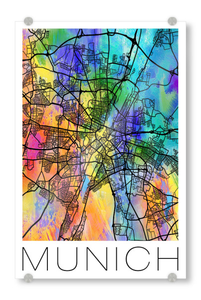 Acrylglasbild "Retro Map of Munich Germany" artboxONE - Städte,Städte / München,Reise - Retro,Karte,München,Deutschland,Aquarell,Straßenkarte