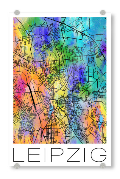 Acrylglasbild "Retro Map of Leipzig Germany" artboxONE - Städte,Reise,Städte / Weitere - Retro,Karte,Leipzig,Deutschland,Aquarell,Straßenkarte