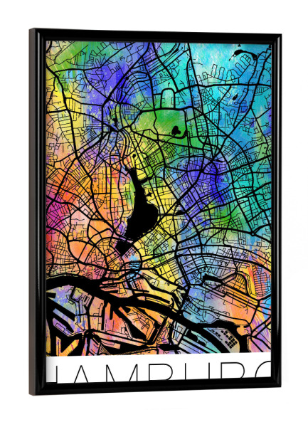 Poster mit schwarzem Rahmen "Retro Map of Hamburg Germany" artboxONE - Städte,Städte / Hamburg,Reise - Retro,Karte,Hamburg,Deutschland,Straßenkarte