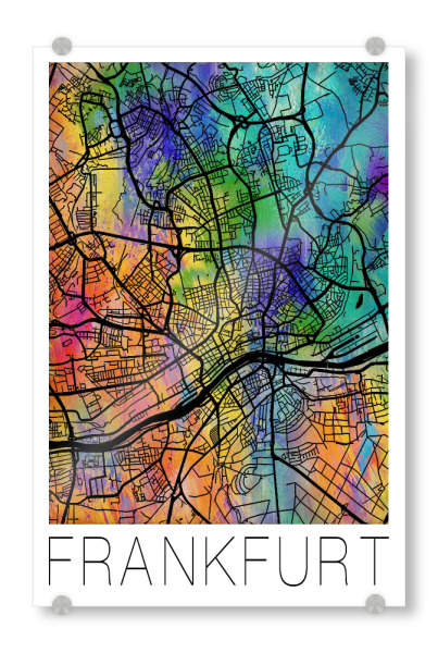 Acrylglasbild "Retro Map of Frankfurt" artboxONE - Städte,Reise,Städte / Frankfurt - Retro,Karte,Frankfurt,Deutschland,Aquarell,Straßenkarte