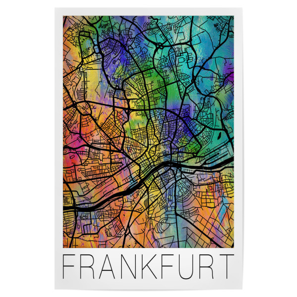 Poster "Retro Map of Frankfurt" artboxONE - Städte,Reise,Städte / Frankfurt - Retro,Karte,Frankfurt,Deutschland,Aquarell,Straßenkarte