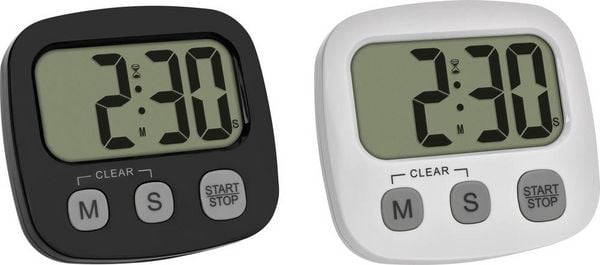 TFA Dostmann 2er Set Digitaler Timer mit Stoppuhr und Uhrzeit Stoppuhr Schwarz, Weiß digital