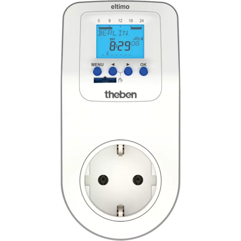 Theben Eltimo 020 Astro top3 Digitale Steckdosen-Zeitschaltuhr 1 Kanal, Astroprogramm und Wochenprogramm, Zufallsprogramm, 300 W LED, 1 Minute Schaltz