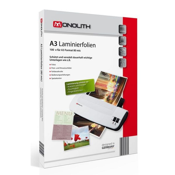 MONOLITH Laminierfolien 80μ hochglänzend DIN A3 100 Stück