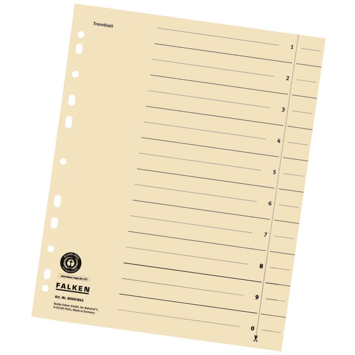 10 x FALKEN Trennblätter DIN A4 verstärkte Lochränder liniert chamois