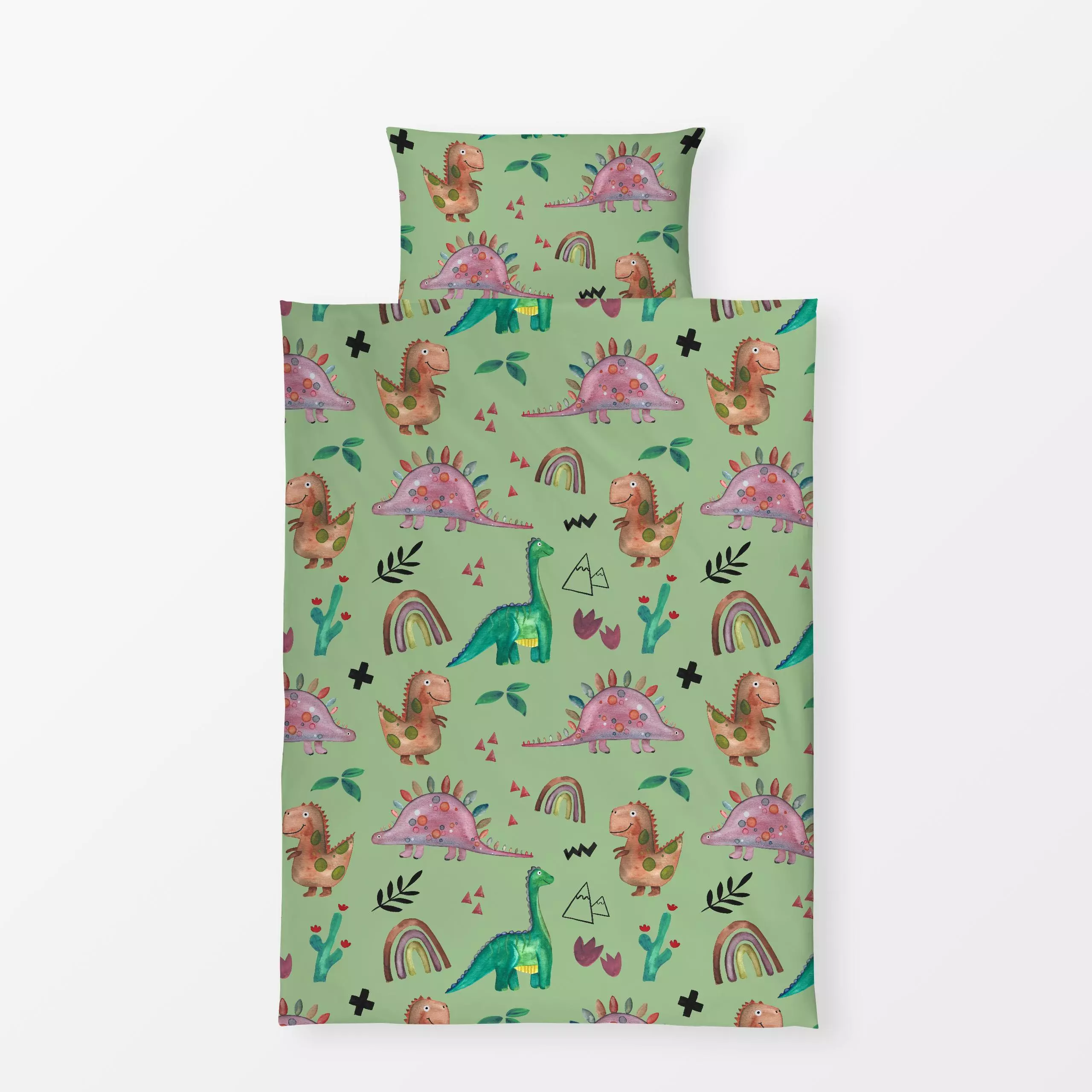 Bettwäsche Dinowelt grün - Kinderzimmer & Motive für Kinder, Tiere - von „Sabrina Ziegenhorn"; Muster, Regenbogen, Dino, Kin...