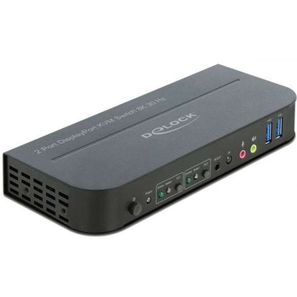Delock DisplayPort 1.4 KVM Switch 8K 30 Hz mit USB 3.0 und Audio, 7680 x 4320 Pixel, 8K Ultra HD, Schwarz