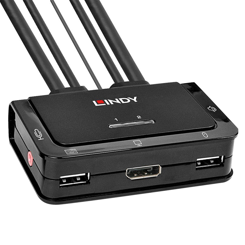 Lindy 2 Port DisplayPort 1.2, USB 2.0 & Audio Cable KVM Switch