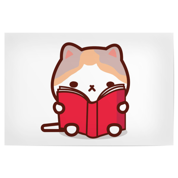 Poster 30x20 cm "Süße Katze liest ein Buch" artboxONE - Tiere,Lustig - Kawaii,Katzen,Niedlich,Bücher,Lesen,Bibliothek,Kätzchen,Bücherwurm