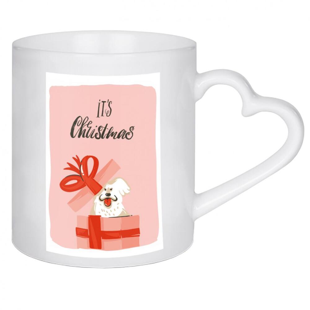 Herztasse "Christmas dog present" artboxONE - Typografie,Tiere,Weihnachten - Weihnachten,Geschenk,Hund,Bunt,Illustration