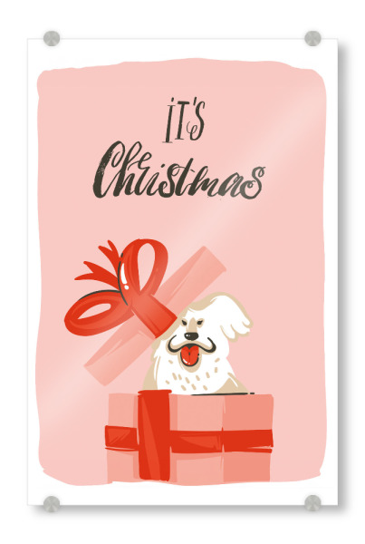 Acrylglasbild "Christmas dog present" artboxONE - Typografie,Tiere,Weihnachten - Weihnachten,Geschenk,Hund,Bunt,Illustration
