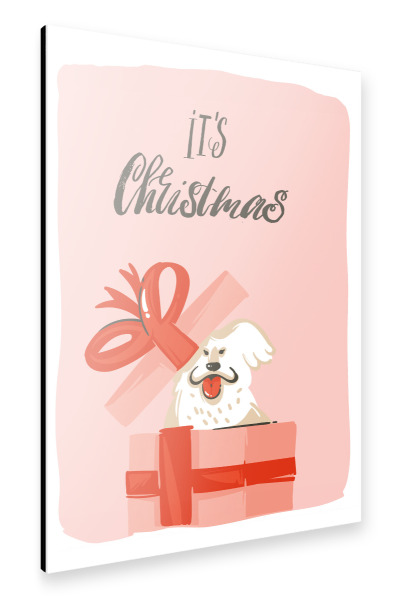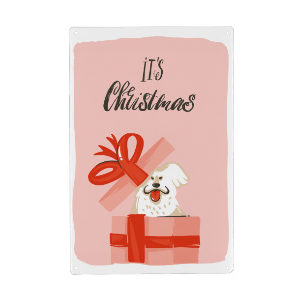 Metall Poster "Christmas dog present" artboxONE - Typografie,Tiere,Weihnachten - Weihnachten,Geschenk,Hund,Bunt,Illustration - Blechschild