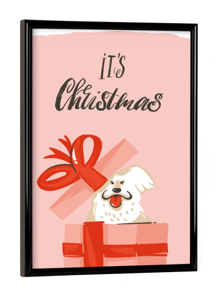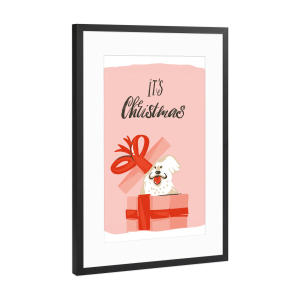 Poster mit Rahmen schwarz "Christmas dog present" artboxONE - Typografie,Tiere,Weihnachten - Weihnachten,Geschenk,Hund,Bunt,Illustration
