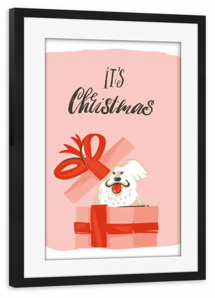 Poster mit schwarzem Rahmen "Christmas dog present" artboxONE - Typografie,Tiere,Weihnachten - Weihnachten,Geschenk,Hund,Bunt,Illustration